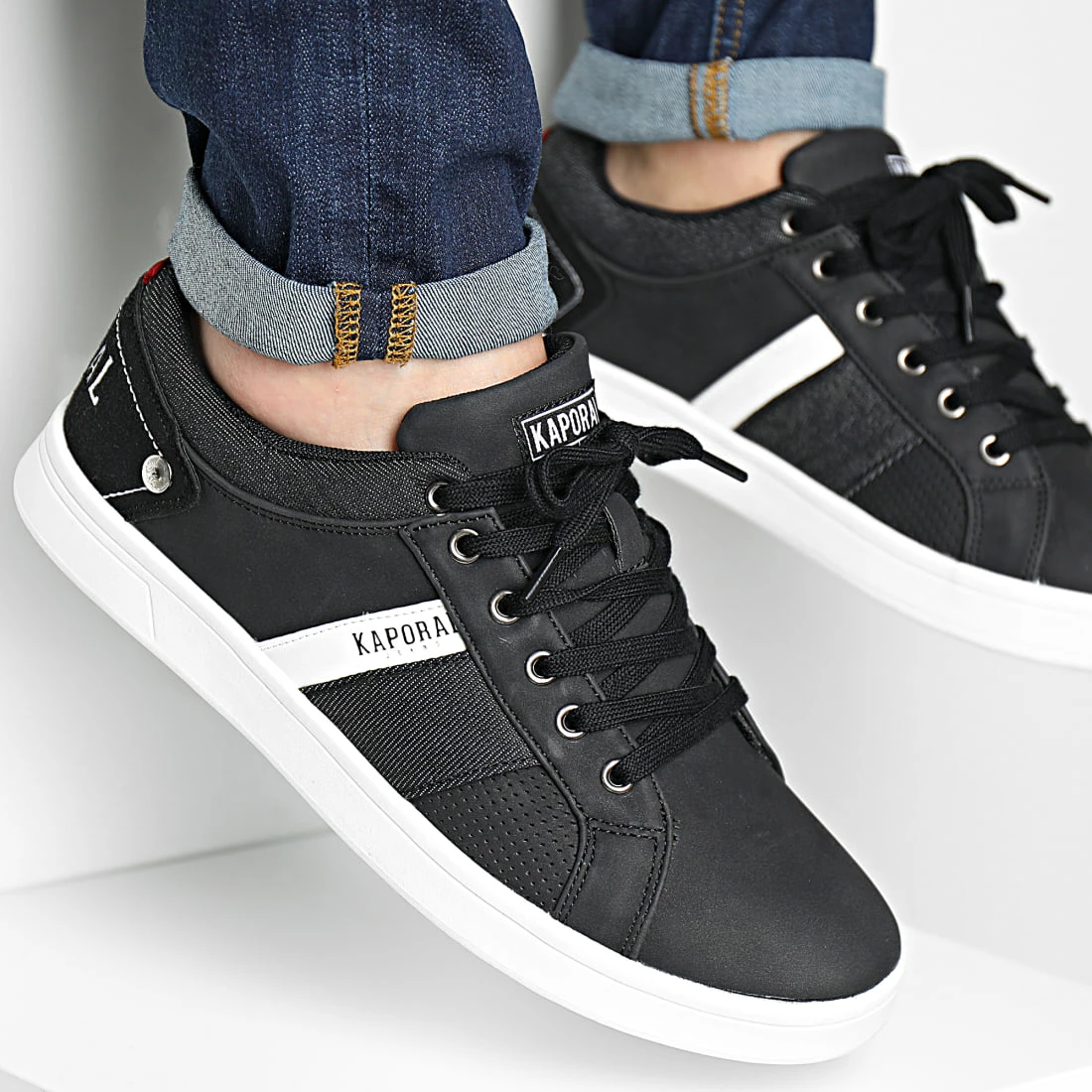 • Baskets casual aspect cuir avec logo Kaporal latéral