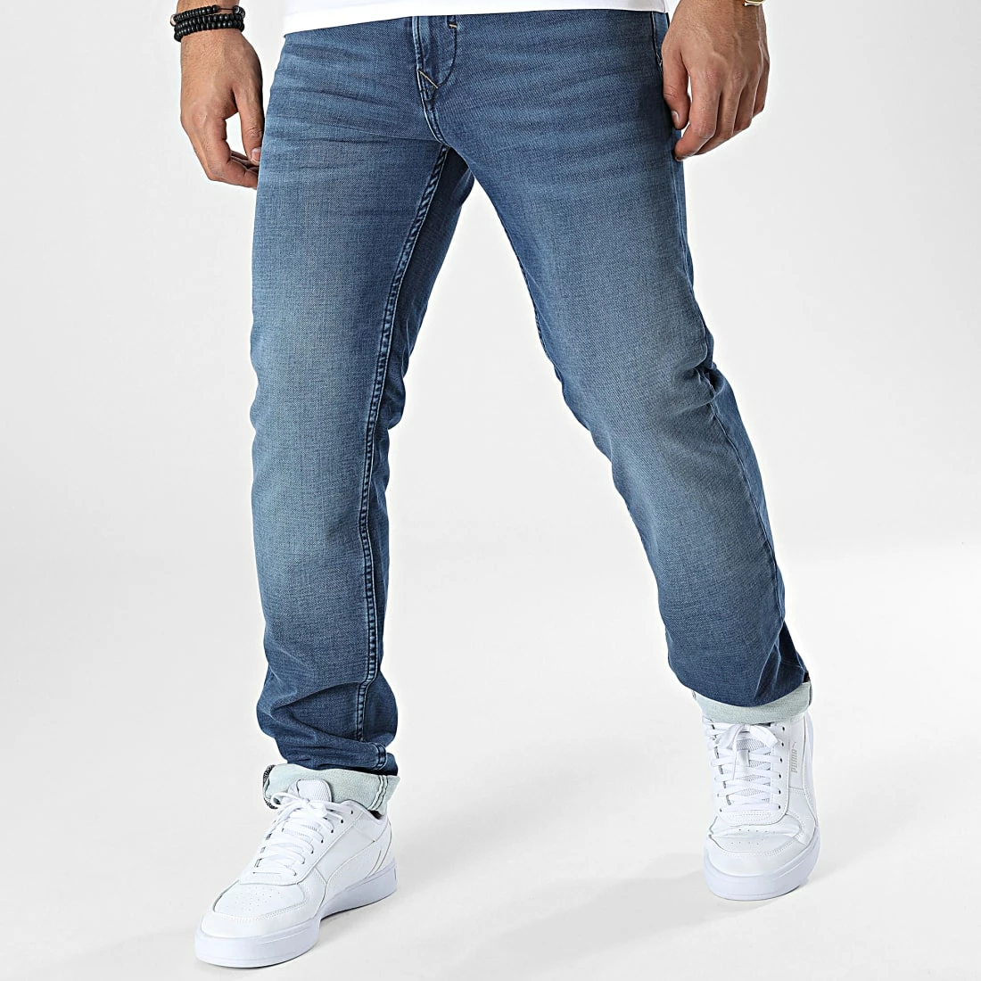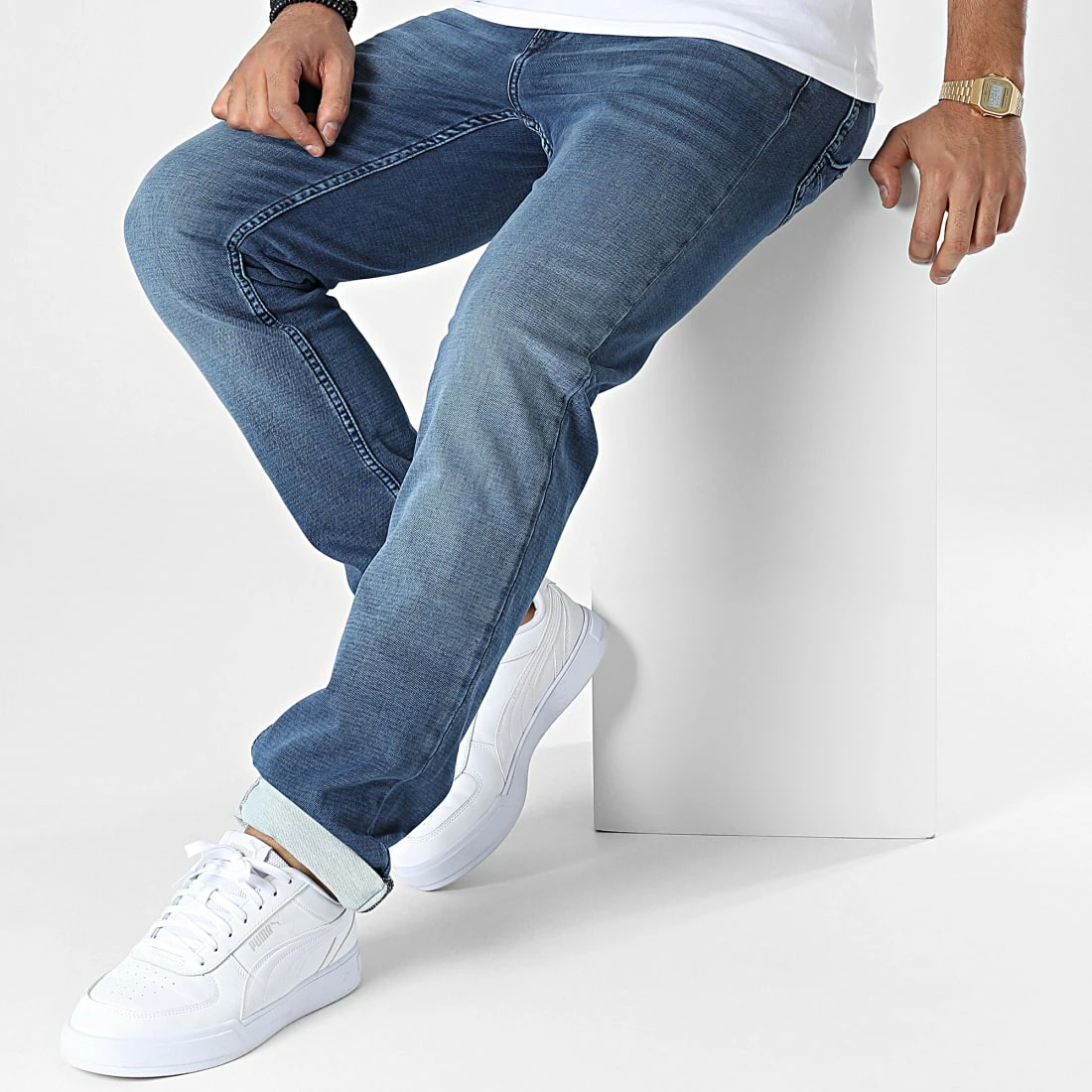 • Jean droit tendance finition délavée