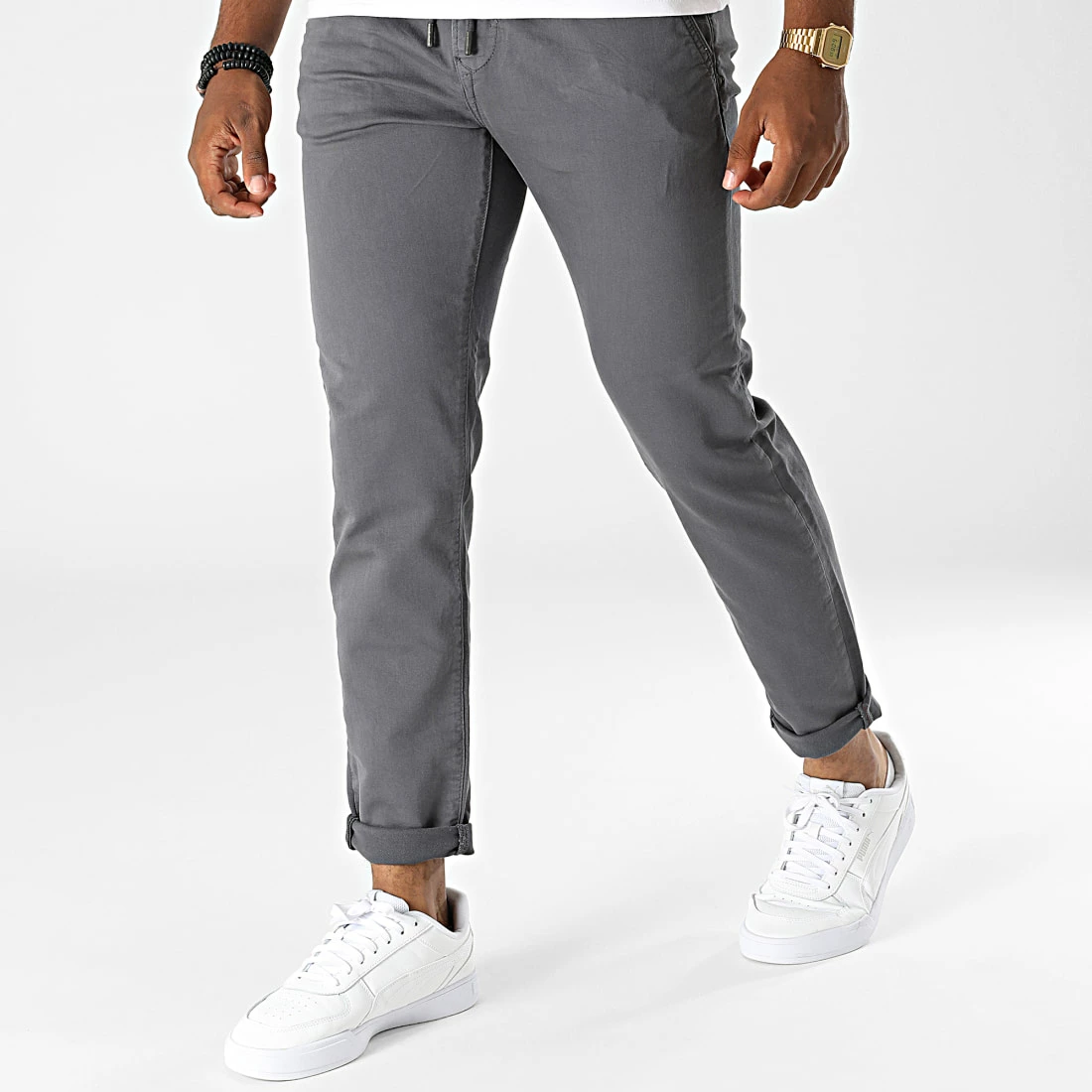 âąÂ Pantalon style jogger en coton stretch uni