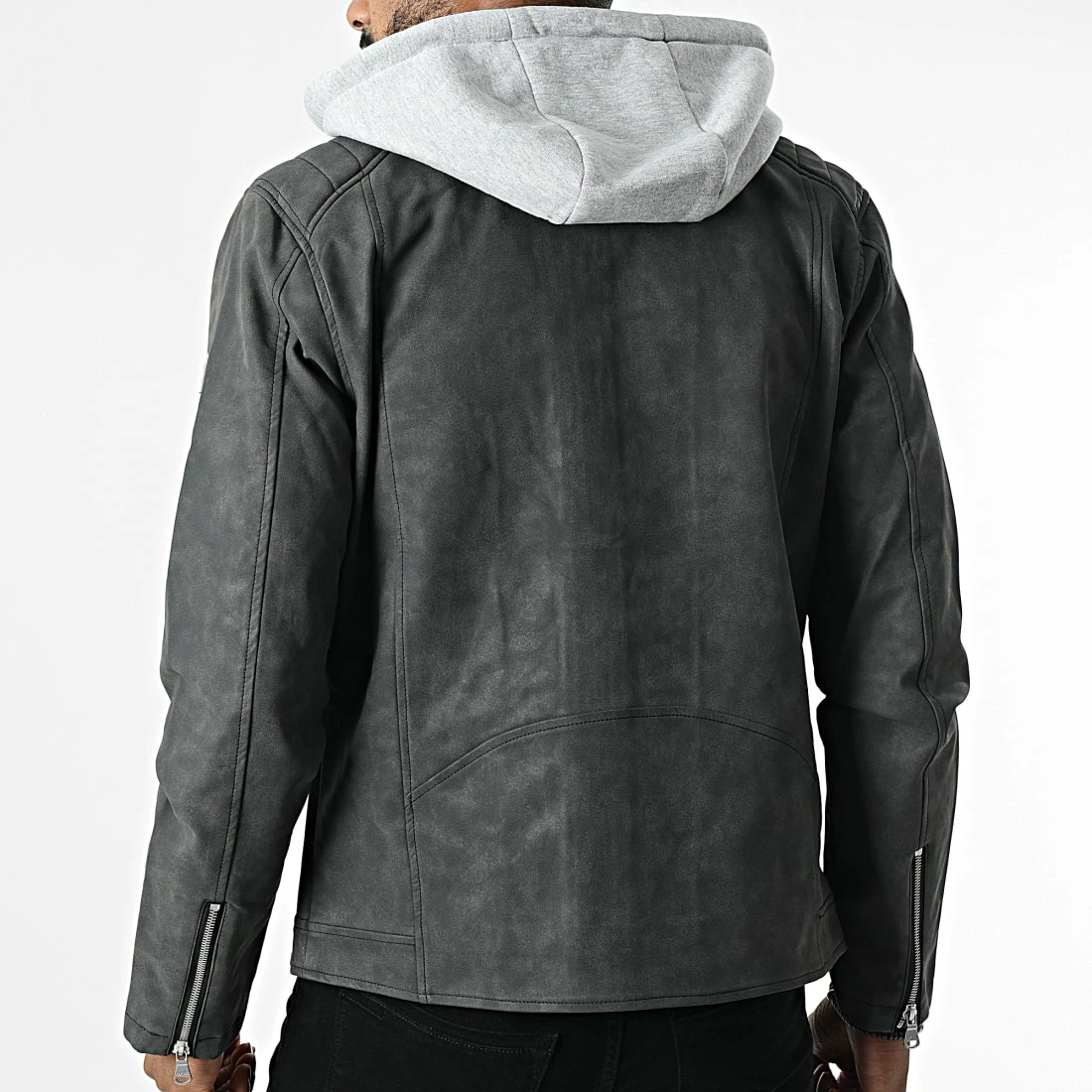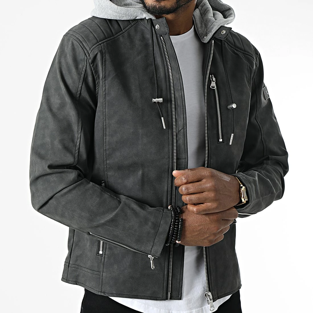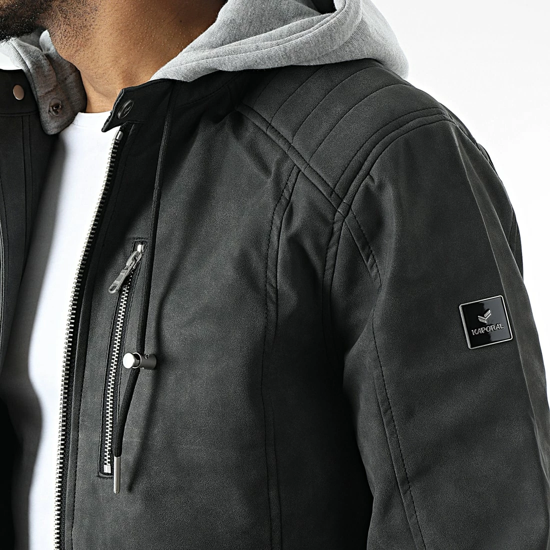 âąÂ Veste biker capuche aspect cuir tendance avec patch Kaporal mĂ©tallique